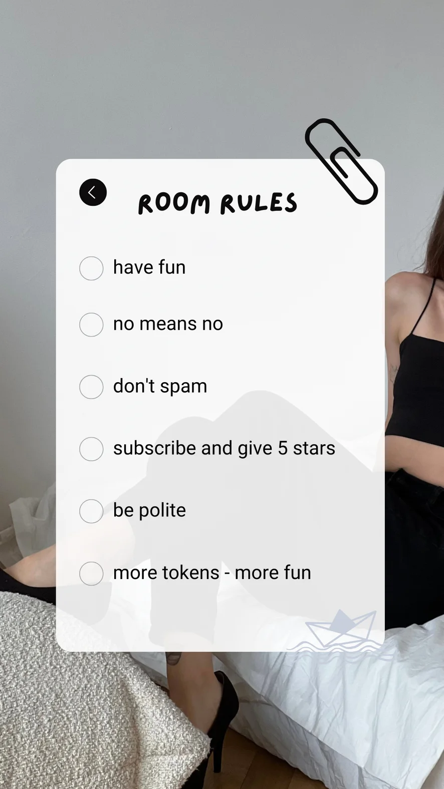 Ahegao, Fenekelés, Twerk, Szexjátékok, Kutyapóz, Iroda, Jóga, Tevepata, Cigizős, Mocskos beszéd, Magassarkú, Lábfétis, Szerepjáték, Kézimunka, Szopás, Felszarvazott, Sztriptíz, Megalázás, Felcsúszott szoknya, Villantás, Olajozás, Erotikus tánc, Farok értékelés, Dildó vagy vibrátor, Ujjazás, Arcra ülés, Kiverési utasítások, Félmeztelen, Orgazmus